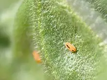 Larvae live parasitically in the nests of various solitary bees and wasps.[2] When the fly larva locates a host larva, it will consume it slowly, greatly increasing in size as it tightly holds onto the host, eventually becoming a pupa and overwintering.[9]