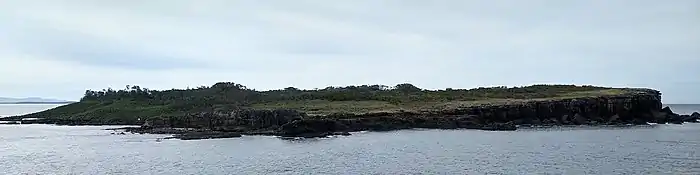 The island is tear-shaped, about 1.1 kilometres (1,200 yd) long north to south, and 600 metres (660 yd) wide. It slopes sharply from the cliffs on its eastern, or oceanic, side down to rock platforms at sea level on its west. Much of it is covered by windblown sand supporting, and stabilised by, various vegetation communities.[1] The island was named after Lieutenant Richard Bowen RN. Another Bowen Island, in Canada, is named after Richard's eldest brother Rear-Admiral James Bowen RN.