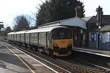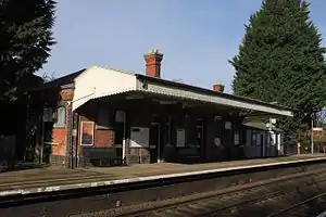 Bramley railway station is on the Reading to Basingstoke Line in Bramley, Hampshire, England.[1] It is 46 miles 41 chains (74.9 km) from London Paddington and is served by Great Western Railway's local services between Basingstoke and Reading.[2] The station is 5 miles (8 km) north of Basingstoke.[3] The line opened in 1848, but the station did not open until 1895. There is a level crossing at the north end of the platforms.[4]