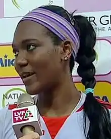 During the FIVB U20 World Championship, she helped her junior team reach fifth place[15] and ending the tournament in fourth place among the scorers.[16] She later played with the Dominican club Mirador Santo Domingo that played the Club World Championship.[17] Her team finished in 4th place after losing the Bronze Medal match to the Brazilian team Sollys/Nestle.[18] She then played the Youth National Championship with Distrito Nacional, being named to take the Oath on behalf of all the athletes.[19] She later debuted with her senior team[20] during the FIVB World Cup as the youngest player,[21] helping her team to reach the eight place, the best position ever.[22]