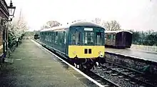 Class 100, no. 56301 at County School Station on the Mid-Norfolk Railway on 17 December 2001. This unit was the first heritage DMU vehicle to enter preservation.