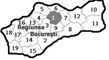 Regiunea București (București/Bucharest region) was one of the newly established (in 1950) administrative divisions of the People's Republic of Romania, copied after the Soviet style of territorial organization.