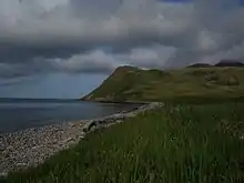 No harbor of any sort occurs on Buldir Island. The coast is mostly steep cliffs or boulder beaches backed by cliffs. Only one small flat area abuts a relatively gentle beach, North Bight Beach, suitable for landing small boats in good weather. It is on the northwest shore of the island.[4] This area is the site of both prehistoric and modern habitation on the island.
