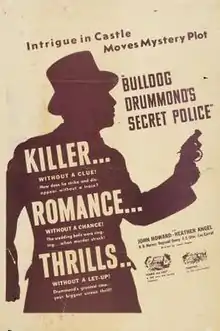 Bulldog Drummond's Secret Police is a 1939 English Castle murder mystery film directed by James P. Hogan, based on the H. C. McNeile novel Temple Tower. It is one of many films featuring the British sleuth and adventurer Bulldog Drummond. In 1930, Fox produced Temple Tower, directed by Donald Gallaher and starring Kenneth MacKenna and Marceline Day, which was also based on the McNeile book.[1]