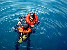 {{cite journal}}: CS1 maint: unfit URL (link) - ↑ Passmore, M.A.; Rickers, G. (2002). "Drag levels and energy requirements on a SCUBA diver". Sports Engineering. Oxford, UK: Blackwell Science Ltd. 5 (4): 173–182. doi:10.1046/j.1460-2687.2002.00107.x. S2CID 55650573.