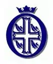 The original West Suffolk County School coat of arms, seen above the old Northgate Street building entrance, consist of a gold cross fleury between five martlets on a blue shield and were the arms of Edward the Confessor, who in the 11th century granted land to the abbey of St Edmund,[29] and those of the old West Suffolk County Council.[30] The contemporary County High School coat of arms has four birds around a cross surmounted by the Saxon Crown[31] of St Edmund, the last King of East Anglia.[32] The blue sweaters with an all gold crest worn by today's pupils echo the colours of Edward the Confessor and are used by the school sports teams and on the school flag.