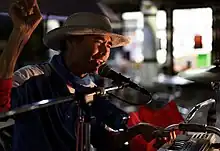 One-man bands have historically performed as buskers playing a variety of instruments simultaneously. One-man bands proliferated in urban areas in the 19th and early 20th centuries and still perform to this day. A current one-man band plays all their instruments acoustically usually combining a guitar, a harmonica, a drum and a tambourine. They may also include singing. Many still busk but some are booked to play at festivals and other events.