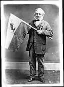 During the war, Union soldiers protected the West against secessionists who ran up Confederate flags in many places, including above the California statehouse in Sacramento, then disappearing before they could be caught.[27] On July 4, 1861, during U.S. Independence Day celebrations in Sacramento, Democrat and veteran Maj. J. P. Gillis celebrated the independence of the United States from Great Britain and the secession of the Confederacy by unfurling a flag based on the first Confederate flag, the Stars and Bars, but containing seventeen stars rather than the Confederate banner's seven, and marching down the street to the cheers of pro-slavery individuals.[28] This was the only known Confederate flag captured in California during the Civil War. Unionist Jack Biderman denounced Gillis, tore the flag from his hands, and taunted secessionists to try to take the flag back. No one tried. Because Gillis' flag was seized by Jack Biderman, it is referred to either as the "Biderman Flag" or the "Gillis Flag."[29]