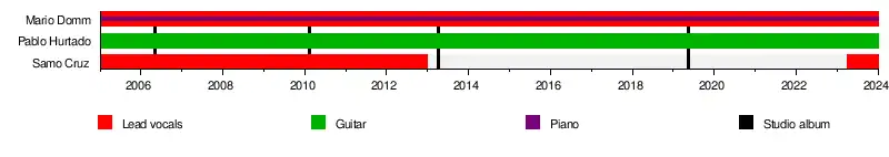 Composer, singer, and producer born in Torreon, Coahuila, Mario Domm commands multiple musical instruments, such as: drums, piano, guitar, and bass.