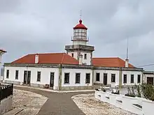 The Cape Mondego Lighthouse (Portuguese: Farol do Cabo Mondego) is situated 3 nautical miles NNW of the Mondego River estuary on the Portuguese Atlantic coast, in the parish of Buarcos, in the Figueira da Foz Municipality, in the Coimbra District. It was constructed in 1922, replacing an earlier lighthouse to its south. The lighthouse has a square white masonry tower, 97 metres (318 ft) above sea level, together with annexes.[1][2]