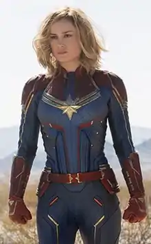 Larson's portrayal of Carol Danvers was praised by multiple critics.[48][49][50] Meg Downey of IGN found Captain Marvel to be a refreshing take in the MCU, stating that Larson's portrayal of Carol Danvers is a "stellar performance" that manages to give the character "a vibrant, joyful life that will fit right into the future" of the MCU.[51] Peter Bradshaw of The Guardian called Larson's performance "fierce" across Captain Marvel, stating, "Larson has the natural body language of a superhero: that mixture of innocence and insouciance, that continuous clear-eyed idealism and indignation combined with unreflective battle-readiness, all the things that give MCU films their addictive quality."[52] Kenneth Turan of Los Angeles Times praised Brie Larson's performance as Carol Danvers, calling her "luminous and powerful [...] with a knockout punch that would have daunted Muhammad Ali."[53] Owen Gleiberman of Variety stated Larson provides an "emotional vibrance" across the film, writing, "Brie Larson lights up a Marvel superheroine film from within."[54]