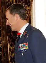 Captain General of the Air Force (Spanish: Capitán General del Aire or Capitán General del Ejército del Aire) is a five-star air force officer rank and the highest rank of the Spanish Air Force. The five-star NATO rank code is OF-10. The honorary appointments formally ceased in 1999. The rank of Air captain general is equivalent to a Marshal of the Air Force in many nations such as the United Kingdom, a general of the Air Force of the United States, a capitain general of the Spanish Army or the Navy. This rank is reserved to the monarch as Commander-in-chief. An Air captain general's insignia consists of two command sticks under five four-pointed stars below the Royal Crown and a golden string.