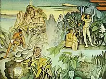 Suárez wanted the hotel to be a gathering place for intellectuals and artists, and commissioned various works of art for the walls and gardens.[11] He hired Mexican and Spanish artists such as José Reyes Meza and Josep Renau to decorate the walls with murals showing Mexican history from the pre-Columbian period to the modern age.[2] The murals would cover an area of 600 square metres (6,500 sq ft).[15] The hotel became the center of cultural activity in Cuernavaca and was visited by artists, writers and political activists.[2]
