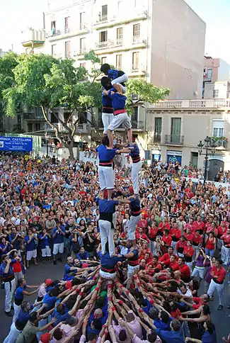 The Castellers de la Vila de Gràcia (Catalan pronunciation: [kəstəˈʎez ðə lə ˈβilə ðə ˈɣɾasiə]), created in 1996, are a colla castellera, based in Vila de Gràcia that makes human castles. They made their first public presentation in 1997 supported by the groups Castellers de Terrassa, the Castellers de Sants and the Castellers de Sant Andreu de la Barca. The colour of their shirts is navy blue.[1]