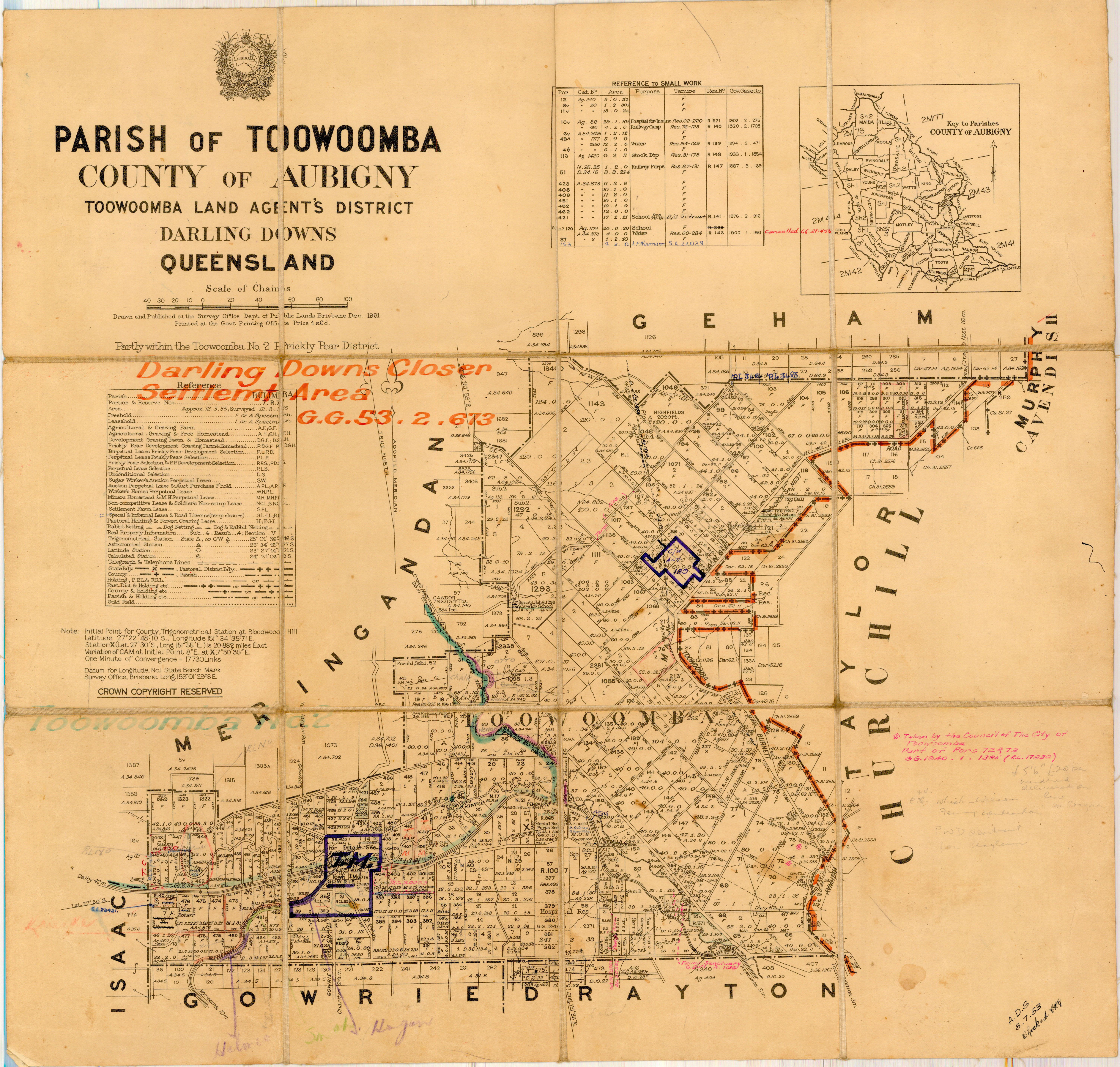 - ↑ "Parish of Toowoomba" (Map). Queensland Government. 1951. Retrieved 13 September 2023.