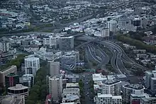 ![]() Southern section of the Central Motorway Junction from the Upper Queen Street bridge | |