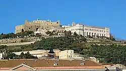 The Certosa di San Martino ("Charterhouse of St. Martin") is a former monastery complex, now a museum, in Naples, southern Italy. Along with Castel Sant'Elmo that stands beside it, this is the most visible landmark of the city, perched atop the Vomero hill that commands the gulf. A Carthusian monastery, it was finished and inaugurated under the rule of Queen Joan I in 1368. It was dedicated to St. Martin of Tours. During the first half of the 16th century it was expanded. Later, in 1623, it was further expanded and became, under the direction of architect Cosimo Fanzago,[1] essentially the structure one sees today.