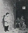 His pastel portraits of both adults and children were in great demand. One of his well-known pastel portraits is of the three oldest daughters of the Manchester novelist Elizabeth Cleghorn Gaskell. The author's husband, William Gaskell was a Unitarian Minister in the city and first chairman of the Portico Library and would have been personally acquainted with Duval.