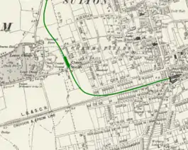The station was to have been built on the W&SR's planned surface railway line in Surrey (now south-west London) from Wimbledon to Sutton.[1] The station was to be north of Cheam Road. The construction of the railway was approved in 1910.[2] In 1911 the UERL agreed to provide funding for the line's construction and to operate its train services by extending the UERL's District Railway (DR) from Wimbledon station.[3]