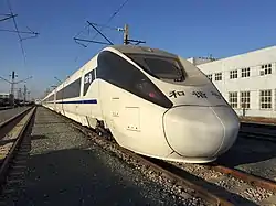 CRH5G is a specialized cold and sand/windstorm resistant version of the CRH5 for use on the Baoji–Lanzhou high-speed railway manufactured by CRRC Changchun Railway Vehicles.[12][13]