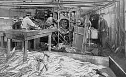 - ↑ Newell, Dianne (1989). The Development of the Pacific Salmon-Canning Industry: A Grown Man's Game. Montreal: McGill-Queen's UP. p. 19. ISBN 0773507175.