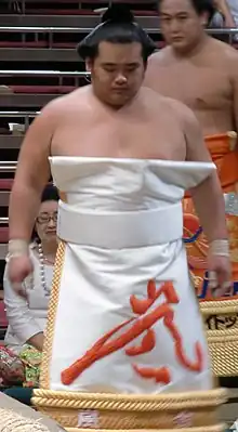 In March 2014 he won his first yūshō in sandanme in a playoff against Takakasuga, the two wrestlers achieving a perfect record of 7–0.[3] By May 2015 he was in the upper ranks of Makushita but again was injured and had to pull out of the tournament and he sat out three tournaments from July 2015 to November 2016. He returned in January 2016 at the rank of Jonidan 32 and lost the yusho in a playoff to Kaito.[4]