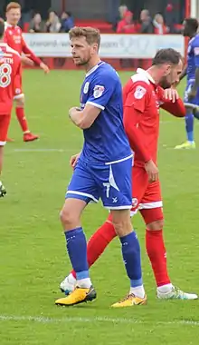 On 31 May 2017, Porter signed a two-year contract with League Two side Crewe Alexandra on a free transfer after turning down a new contract offer from Colchester.[132] He scored twice for Crewe on his debut in a 2–2 draw with Mansfield Town on 5 August 2017.[133] After scoring 27 goals in his first two seasons at Crewe,[134][135] an extra 12 months was added to Porter's initial contract, and after scoring his 10th goal of the (pandemic-shortened) 2019-2020 season on his 100th appearance, he was reported to have asked manager David Artell about a contract for the 2020–2021 season.[136]