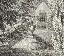 Memorial to Hirschfeld in the Seifersdorfer Garten, copperplate engraving by Darnstedt (1792, Ausschnitt)