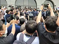 However, on 14 December 2007, 5 days before the presidential election, Chung made an announcement to leave the PFP.[53][54] He did not mention the reasons clearly, but several newspapers suggested that he opposed the Shim's withdrawal in order to support the independent candidate Lee Hoi-chang, as he was in favour of the GNP candidate Lee Myung-bak.[53][54] Following the landslide victory of Lee, Chung officially joined the GNP on 17 January 2008.[55][56][57]