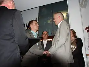 Civil union has been legal in New Zealand since 26 April 2005. The Civil Union Act 2004 to establish the institution of civil union for same-sex and opposite-sex couples was passed by the Parliament on 9 December 2004.[1] The Act has been described as very similar to the Marriage Act 1955 with references to "marriage" replaced by "civil union". A companion bill, the Relationships (Statutory References) Act, was passed shortly thereafter on 15 March 2005, to remove discriminatory provisions on the basis of relationship status from a range of statutes and regulations. As a result of these bills, all couples in New Zealand, whether married, in a civil union, or in a de facto partnership, now generally enjoy the same rights and undertake the same obligations. These rights extend to immigration, next-of-kin status, social welfare, matrimonial property and other areas. Non-married couples are not however permitted to adopt children, although people in non-marital relationships can adopt as individuals.[2]