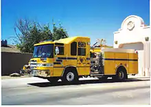 The PEPCON disaster was an industrial disaster that occurred in Henderson on May 4, 1988, at the Pacific Engineering and Production Company of Nevada (PEPCON) plant. The fire and subsequent explosions killed 2 and injured 372 people and caused an estimated US$100 million of damage. A large portion of the Las Vegas Valley within a 10 miles (16 km) radius of the plant was affected, and several agencies activated disaster plans.[5] The Clark County Fire Department Chief alerted all units to the facility. The Henderson Fire Department has units already staged closer to the explosion and many were injured. The Clark County Fire Department units were the second department in and took over medical/fire operations as many Henderson firefighters were down and injured; including the Henderson Fire Chief and the passenger in his car. Clark County Firefighters donned specialized personal protective equipment and moved into the scene. Leaking tanks of anhydrous ammonia and residue from acid and other caustic chemicals took days to repair and clean. Two were confirmed dead on scene; Bruce Halker the plant manager’s remains were discovered in his wheelchair and controller Roy Westerfield’s body was obliterated in the final blast. Both deceased had physical disabilities that disabled them from clearing the blast radius of the PEPCON plant in time. Some reports detailed that Roy Westerfield recognized the inevitable explosion and stayed behind to inform both Henderson and Clark County Fire Departments of the impending disaster. The Clark County Fire Department and other responding EMS agencies transported over 100 patients to five surrounding hospitals along with their heroic fire suppression and chemical overhaul.[6]