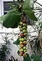 In late summer, it bears green fruit, about 2 cm (0.79 in) diameter, in large, grape-like clusters.[3] The fruit gradually ripens to a purplish color. Each contains a large pit that constitutes most of the volume of the fruit.
