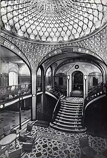 In 1912 the company put into service a new liner, SS France. Even though it remained clearly below its competitors in terms of size, it posted an average speed of 24 knots which was very appreciable at the time, and was 210 meters in length. Its luxury earned it the nickname "the Versailles of the Atlantic," and the ship quickly gained the loyalty of a wealthy clientele.[32] To appeal to less wealthy passengers, the company also launched new ships such as SS Chicago in 1908 and SS Rochambeau in 1911. Smaller and slower, these liners cost less to the company, which mainly operated them for migrants, to whom they often offered services superior to the larger liners of the time. This recipe quickly proved effective, and this type of vessels quickly established itself alongside larger, faster liners which formed the flagship of the fleet.[33]