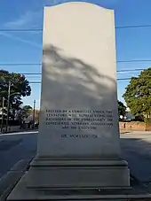 In the early morning hours of June 25, 2020, the City of Wilmington removed the statue, citing public safety and protection of historical relics.[3] By June 30, the city government had covered the stele and pedestal with a black shroud, obscuring the inscriptions.[4] The removal of the statue was coincident with the announcement by the city government that three police officers had been fired for "brutally racist" conversations recorded on official police equipment.[5]