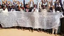The Rohingya people are an ethnic minority that mainly live in the northern region of Rakhine State, Myanmar, and have been described as one of the world's most persecuted minorities.[51][52][53] They describe themselves as descendants of Arab traders and other groups who settled in the region many generations ago.[51][37] After riots in 2012, academic authors used the term Rohingya to refer to the Muslim community in northern Rakhine. For example, Professor Andrew Selth of Griffith University uses the term "Rohingya" but states "These are Bengali Muslims who live in Arakan State... most Rohingyas arrived with the British colonialists in the 19th and 20th centuries."[54] Among the overseas Rohingya community, the term has been gaining popularity since the 1990s, though a considerable portion of Muslims in northern Rakhine are unfamiliar with the term and prefer to use alternatives.[55][56] Scholars have stated that they have been present in the region since the 15th century.[57] However, they have been denied citizenship by the government of Myanmar, which describes them as illegal immigrants from Bangladesh.[51]