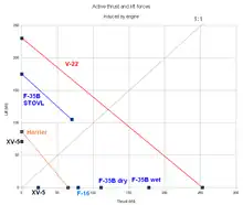 Powered lift and thrust forces of various aircraft
