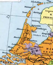 The County of Holland and other nearby territories had a considerable amount of independence from Holy Roman Empire leadership in the 10th and 11th centuries.[1] Until at least the second half of the 10th century, Holland's leadership valued secular principles, a contrast to the nearby Prince-Bishopric of Utrecht.[1]