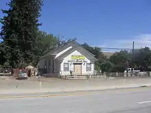 Once the site of the Twelve Mile House (a stagecoach station on the Butterfield Overland Mail route), Coyote is notable for its historic Grange Hall, close to the Post Office and the Metcalf Energy Center. The town's name was changed from Burnett to Coyote because residents saw many coyotes in the area.[3] The town nearly disappeared after U.S. Route 101 was rerouted as a freeway about one kilometer (0.6 mile) east of the town.[3] The community was nearly absorbed by San Jose's urban sprawl, until collapse of the dot-com bubble canceled the city's plans. San Jose, however, still owns much of the land in the area after purchasing it prior to 2001.[3]