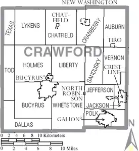 Crawford County is a county located in the north central portion of the U.S. state of Ohio. As of the 2020 census, the population was 42,025.[1] Its county seat and largest city is Bucyrus.[2] The county was created in 1820 and later organized in 1836.[3] It was named for Colonel William Crawford, a soldier during the American Revolution.[4]