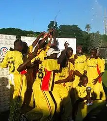 In January 2007, Uganda faced Bermuda[27] and Canada[28] as those two teams prepared for Division One of the World Cricket League in Nairobi.[29] This also served as preparation for Uganda's visit to Darwin, Australia, for Division Three of the same tournament. Uganda won their Group B games against the Cayman Islands, Hong Kong, and Tanzania before beating Papua New Guinea in the semi-final[30] and Argentina in the tournament final.[31] Winning Division Three earned Uganda a spot in the ICC's High Performance Program,[32] and promotion to Division Two.