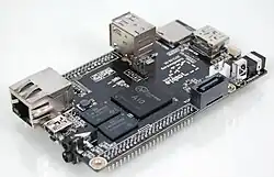 Cubieboard is a single-board computer, made in Zhuhai, Guangdong, China. The first short run of prototype boards were sold internationally in September 2012, and the production version started to be sold in October 2012.[1] It can run Android 4 ICS, Ubuntu 12.04 desktop,[2] Fedora 19 ARM Remix[3] desktop, Armbian, Arch Linux ARM,[4] a Debian-based Cubian distribution,[5] FreeBSD,[6] or OpenBSD.[7]