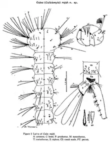 - ↑ Tsukamoto, M. 1989. "Two New Mosquito Species from a Pitcher Plant of Mt. Kinabalu, Sabah, Malaysia: Culex rajah and Toxorhynchites rajah (Diptera: Culicidae)" (PDF). Archived from the original (PDF) on April 1, 2022.. Japanese Journal of Tropical Medicine and Hygiene 17(3): 215–228.