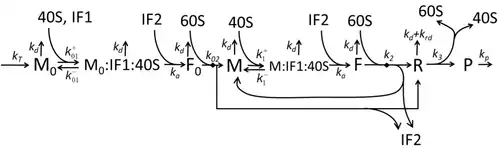 - 1 2 Skjøndal-Bar N, Morris DR (January 2007). "Dynamic model of the process of protein synthesis in eukaryotic cells". Bulletin of Mathematical Biology. 69 (1): 361–93. doi:10.1007/s11538-006-9128-2. PMID 17031456. S2CID 83701439.