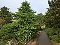 The Rock Garden is located centrally on campus between College Road, and Rock Garden Road.[40] It gifted to the Agricultural Campus by the Friends of the Garden.[41] Featuring uncommon plants in a very sophisticated layout, the Rock Garden invites for exploration, relaxation, and offers quiet outdoor study areas (wooden and stone seating).[42] The garden is supported and maintained through the Friends of the Garden and the Nova Scotia Rock Garden Club.[43] 450 tons of local red granite was utilized to create the stunning landscape.[42] Beside more expected rock garden plants, one can find beside many others: Cacti, a Ginko biloba tree, and a beautiful Japanese maple tree. Visitors are asked to stay on the graveled and marked walking paths, and dogs are prohibited.