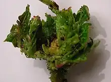 Dasineura crataegi, the hawthorn button-top gall-midge, is a dipteran gall-midge. It causes the hawthorn button-top gall, which develops in the terminal shoots of common hawthorn, Crataegus monogyna Jacq., Midland hawthorn C laevigata (Poir.) DC and their hybrid, C × media Bechst.[1][2] Synonyms are Perrisia crataegi and Cecidomyia crataegi (Winnertz, 1853).[3]