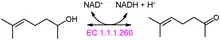 Reduction of NAD+: NAD+ + 2H+ + 2e− ↔ NADH + H+