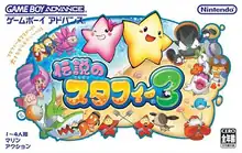 Densetsu no Stafy 3[lower-alpha 2] is a platforming video game developed by Tose and published by Nintendo for the Game Boy Advance only in Japan on August 5, 2004. It is the third game in The Legendary Starfy series, as well as the third and last title of the series developed and released for the Game Boy Advance. Later, its sequel, Densetsu no Stafy 4, was developed for the Nintendo DS.