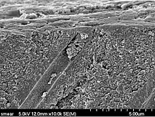 Smear layer refers to a layer of debris on the inorganic surface of substrate which comprises residual inorganic and organic components. This layer is produced whenever the tooth structure undergoes a preparation with a bur.[3]