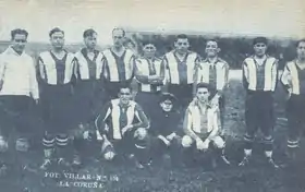 The team played friendly matches regularly and competed in local leagues, but failed to achieve success in the Copa del Rey in its early years. However, in 1912 Deportivo won their first official title, the short-lived Concurso España.[8][9][10]
