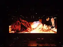 Shakira included the song on the setlist of her The Sun Comes Out World Tour (2010–11), where she performed it as a medley with "Nothing Else Matters" (1992), by American band Metallica.[19] For the performance she was dressed with a crop top and a red skirt.[20] Jon Pareles from The New York Times praised her performance in New York, saying that "she used her body, with a girlish grin and dance moves of finely calibrated sensuality: angular hip twitches and smooth slow-motion swivels, chest thrusts and sinuous wrist turns, as if her every joint rotates 360 degrees".[21] A writer of Sprinning Platters praised the performance of the song, calling it a "seductive dance number in which she managed to test the skill and professionalism of her drummer by incorporating him into her moves", further dubbing it a "'you had to be here' moment".[19] The live performance of "Despedida" was included on her album Live from Paris (2011) which was filmed during the concerts held on June 13 and 14 at the Palais Omnisports de Paris-Bercy.[22] It was also made available for purchase on the iTunes Store and released to the singer's official Vevo account on January 11, 2012.[23][24]